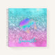 Haz que el regreso a la escuela sea divertido con este cuaderno personalizado lindo. Está diseñado con elegante brillo iridiscente de niña en colores de arcoíris de unicornio en aqua rosa turquesa púrpura.