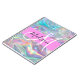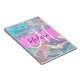 Nombre del monograma holográfico iridiscente del arcoiris giratorio y cuaderno inicial. Su nombre personalizado y su monograma están escritos en un guión elegante con letras a mano con un fondo rosado. ¡Un regalo perfecto de cumpleaños o Navidades!
