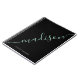 Un portátil de espiral personalizado de personalizado moderno, de color negro y verde. Este sencillo diseño presenta un fondo de color negro, con un nombre verde menta o una plantilla de texto monograma. El nombre está escrito con un precioso guión de estilo con letras a mano. Gran regalo femenino para chicas y mujeres. Si necesitas ayuda o elementos coincidentes, por favor contacta conmigo.