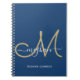 Cuaderno Monograma moderno con escritura dorada y azul mari