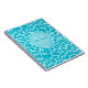 Añada la moda y el instinto a su estilo personal con esta moda y cuaderno femenino del monograma del estampado de girafa de las azules turquesas. Personalice este diseño de moda del estampado de animales de las azules turquesas y de la aguamarina añadiendo su inicial conocida y con monograma.