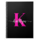 Este sencillo y elegante bloc de notas en espiral negro de 6,5 x 8,75 con tu nombre en un tipo de letra de guión moderno en blanco y tu primera versión inicial en un tipo de letra de cierre moderno en rosa caliente es perfecto para ti. Es de diseño y a la vez muy clásico. Será útil en tantas situaciones. Perfecto para el trabajo, el hogar, la escuela, el periodismo.