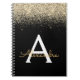 Cuaderno Monograma negro dorado Purpurina negro moderno