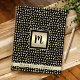 Un Relieve metalizado de oro falso cuadrado con un guión negro de nombre inicial y personalizado en una banda dorada, superponiendo un patrón de puntos dorados oblongos sobre negro, resalta esta moda, jovial, moderna cuaderno de revistas de espiral monogramada. 8 diseños de papel interior diferentes para elegir. Hace una declaración elegante cada vez que la utiliza. ¡Un gran regalo para un amigo, así como para ti mismo! Sólo tiene que escribir el nombre y el nombre inicial de su elección, y puede personalizar fácilmente este bloc de notas del diario de espiral de nombres personalizado. Por favor, envíame cualquier pregunta o petición.