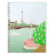 Monograma primavera en un bloc de notas de París (80 páginas B&W) con el paisaje de París - Torre Eiffel, río Sena con botes, florido castaño y puente Alexander (puente Alejandro III), uno de los lugares más bellos de París. Barco rosa y blanco con un nombre personalizado. Colores pasteles: agua, azul, marrón, verde, rosa. Un regalo encantador y romántico personalizado.