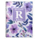 Cuaderno Monograma personalizado de flores púrpura pintadas