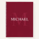 Cuaderno Monograma personalizado y nombre rojo borgoña