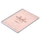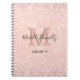 Un cuaderno de moda de niñas con un fondo rosa de efecto brillante, un overol de cascada purpurina rosado, tu inicial, nombre y texto extra que dice 'volumen #1', también se puede cambiar.