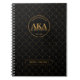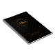 Mantén todas tus notas e ideas organizadas con este portátil de lujo y elegancia adicional hecho por un personalizado. Sofisticado y profesional logotipo de monograma de negocios con un marco redondo de puntos dorados en el que figura el monograma de negocios de 3 letras y la información adicional de nombre de negocio o empresa, Tagline o slogan, y año establecido. El fondo muestra un elegante y sofisticado patrón de enrejado dorado, sobre fondo negro personalizable. Diseño versátil que puede transferirse a una variedad de suministros de oficina, accesorios de escritorio y productos promocionales.