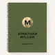 El moderno portátil presenta un diseño minimalista en verde oliva con monograma de oro metálico. Nombre y título personalizados presentados en un tipo de letra simple y elegante con un emblema de un monograma dorado cepillado. Mostrado con un nombre personalizado y un monograma inicial en la parte delantera de la tipografía moderna, este bloc de notas personalizado de negocios está diseñado con texto personalizado. Puede cambiar el texto mediante los campos proporcionados o utilizar el botón "mensaje" para ponerse en contacto con el diseñador para obtener ayuda. Para crear su propio portátil personalizado: 1. Seleccione personalizar esta plantilla. 2. Sustitúyase el texto. 3. Revise su diseño para dimensionar y colocar. Un portátil moderno y lujoso para el hogar o la oficina, un portátil elegante monogramado para el espacio de trabajo. Ideal para consultores, abogados, agentes inmobiliarios, entrenadores corporativos o ejecutivos, o cualquier otro profesional de negocios, o un regalo de oficina para él o ella.