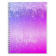 Nombre de monograma personalizado o purpurina de goteo inicial de imitación rosa caliente y destellos. Un cuaderno de moda glamuroso y juvenil para tomar notas en la escuela, universidad, trabajo, deberes o como diario. Fácil de cambiar de tipo de letra y/o color con el botón de personalización, y hace un regalo perfecto para la ducha de novia, el invitado boda, dulce 16 cumpleaños, aniversario o regalo de soltera.