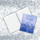 Disfrute de una combinación perfecta de sofisticación y brillo con este portátil con un elegante fondo metalizado azul cepillado combinado con un toque de purpurina. Su monograma, mostrando su nombre con una elegante inicial, le añade un toque personal a la portada. Ideal para anotar ideas, notas o bocetos, este cuaderno está diseñado para inspirar creatividad en cada momento. Su diseño llamativo lo convierte en un accesorio destacado, ya sea en la escuela, el trabajo o el hogar.