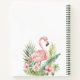 Un elegante fondo blanco decorado con flamencos rosas, flores tropicales y follaje. Personalice y agregue un nombre y sus iniciales de monograma.
