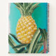 Una hermosa acuarela tropical de piña tropical con un verde azulado diseño de fondo acuático. Portátil de verano perfecto para viajes de verano, cuadernos de viaje, cuadernos de bocetos, etc.