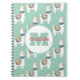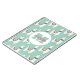 Cuto cuaderno/diario con un patrón de llamas blancas sobre un fondo verde de menta. Personalizado con su monograma/nombre y inicial. Ideal para tu compra de regreso a la escuela.
