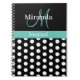 Moda y moda con negro, verde verde azulado y blanco. Siempre con estilo con puntos de polka. Un regalo perfecto o hazlo por ti mismo. Personalizar a acomodarte. Usa tu apellido o tu nombre o usa tu propio texto. Agregue el tema de su bloc de notas o agregue una instrucción motivacional o deje en blanco. ¡La decisión es tuya! Avísame si necesitas ayuda para hacer esto más tuyo. designsbykatz@gmail.com