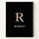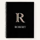 Cuaderno Monograma y nombre personalizados en blanco y negr