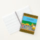 ¿Tienes un niño que ama los vehículos de construcción? ¡Este cuaderno escolar es perfecto! El cuaderno tiene un camión de volcado, un camión de cemento y una excavadora, todos trabajando juntos en un sitio de construcción de carreteras. Un niño se para cerca del frente con una señal de parada para ayudar a detener el tráfico. También hay conos de tráfico de seguridad naranja y montañas de fondo y cielo azul. Termina el cuaderno con el nombre de tu joven.