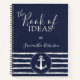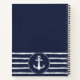 Crea un cuaderno náutico personalizado azul marino y blanco para ideas y planes con el diseño elegante de tipografía, ancla y rayas. Escriba su nombre utilizando la plantilla para crear un regalo único para sus seres queridos. Las franjas tienen un aspecto dibujado a mano.