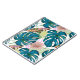 Patrón abstracto sin inconvenientes. Monstruo turquesa oscuro, melocotón delicado y flores amarillas. abstracción, tropicales, monstera, flores, hawaii, floral, jungla, naturaleza, arte, verde, melocotón, turquesa, composición, diseño, moda, estilo, indio