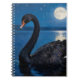 A detailed black swan glides on a calm lake under moonlight. This image features complementary colors and reflections, evoking classical academic and romantic art styles.