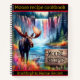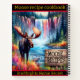 Un impresionante alce se alza con elegancia al lado de un tranquilo lago con una majestuosa cascada de agua en el fondo, rodeado de un vibrante follaje otoñal y enormes árboles. NOTA Para Cambiar Los Colores De Texto O Borde Utilice La Herramienta Editar Utilizar Diseño