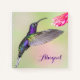 Portátil personalizado con el hermoso colibrí de arcilla violeta volando a través de un bosque nublado hacia una flor rosa. Fácilmente personalizable con un nombre para crear un hermoso y único elemento para los amantes del colibrí, el jardín y la naturaleza. Foto tomada en Bosque de Paz Reserva Biologica, Valle del Río Toro, Alajuela, Costa Rica.