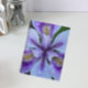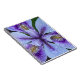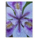 Un cuaderno de tamaño personal, enlazado en espiral, que muestra la imagen de portada de una flor de iris clara, violeta y sin barba, con salpicaduras de amarillo y gotas de lluvia en sus pétalos. ¡Un bonito diseño floral! Usar como diario o para tomar notas.