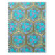 Toma notas con estilo con un cuaderno en espiral que incluye una de las obras de arte originales de IconDoIt impresas en un color brillante y espléndido de la cubierta, con múltiples diseños disponibles para cada uno de tus estados de ánimo y propósitos. Esta muestra el aspecto de un mosaico de azulejos de cerámica pintados a mano en forma de hexágono, protagonizado por un trío de pavos reales inspirados en el Art Déco, en tonos fríos de agua, lac y marinero adornados con bordes negros y dorados.