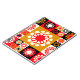 mosaico étnico de estilo asiático con flores estilizadas en tonos de marfil rojo dorado negro