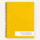 Un elegante diseño minimalista personalizado de cuaderno con tipografía moderna que se puede personalizar fácilmente con su propio nombre y título. El diseño incluye un elegante estandarte horizontal sobre un fondo amarillo mostaza.