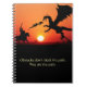 "Los obstáculos no bloquean el camino. Son el camino" almohadilla de escritura Inspiradora y motivacional para cuaderno de presupuesto. Silhouette Dragon y Knight a caballo contra la puesta de sol. Personalice con su propio presupuesto o mensaje, si lo desea. Gran idea de regalo.