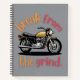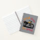 Un cuaderno que presenta una motocicleta retro, con la frase "Romper con la rutina" centrada alrededor de la imagen. El diseño sugiere un sentido de aventura y libertad, ofreciendo una escapada pacífica de la rutina diaria.