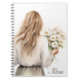 Arte acuático de una joven con un ramo de margarita sobre blanco. Se puede cambiar el nombre.