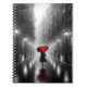 Cuaderno Mujer Con Paraguas Rojo En Lluvia