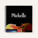 Portátil instrumento musical con una elegante imagen de violín. Con un fondo negro, se puede personalizar con letras de tipografía de guiones blancos. Un artículo divertido que es genial para un estudiante que toma notas en clase de orquesta o se mantiene organizado en su oficina de casa.