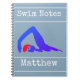 Este cuaderno diseñado para que usted registre su entrenamiento de natación tiene un diseño sencillo de un nadador y se titula "Swim Notes". Si lo desea, puede dar personalizar al texto y agregar su nombre.