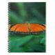 Cuaderno Naranja brillante y mariposa negra en hoja