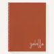 Este cuaderno minimalista moderno presenta su nombre en una caligrafía de escritura blanca a mano sobre un fondo de naranja quemado. La tipografía está colocada de manera elegante en la esquina inferior derecha. Perfecto para la oficina, dormitorio, regreso a clases o negocios.