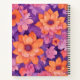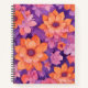 Un patrón de grandes flores naranjas que brillan sobre un fondo violeta, creando un diseño cálido y acogedor.
