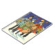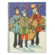 Ilustracion de época Diseño de feriado navideño con un grupo de personas tocando instrumentos y cantando villancicos de Navidades por la noche. Este grupo de músicos incluye a un hombre en un gorra tocando el violonchelo musical y otro tocando un clarinete y al hombre en el medio sosteniendo un libro de canciones mientras el cantante principal canta Noche Silenciosa. Una hermosa noche de invierno con estrellas y luna en el cielo y nieve fresca en el suelo