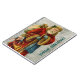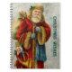 Los navidades desean de fuente verde. Una imagen vintage del clásico Padre Navidad usando su abrigo rojo cálido y cargando una bolsa llena de juguetes. Este viejo Santa Claus también conocido como el viejo y alegre San Nick es delgado y tiene un bastón para caminar por la tierra regalando juguetes a todos los niños y niñas. El fondo es un viejo y descolorido pergamino publicitario parisino vintage con una mirada de mal humor.