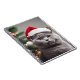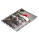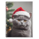 Un gatito de pelo corto británico azul/gris con un sombrero de Santa.