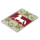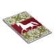 Los navidades ecuestres clásicos y elegantes, o el diseño temático de los caballos de vacaciones, presentan un caballo blanco trotando con un patrón adamascado de bonito y una bandera roja en el medio para un aspecto muy festivo. Este regalo equino es perfecto para personas que aman caballos de cualquier edad!
