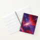 Una explosión de colores violeta y rojo en el vasto espacio, salpicada de estrellas brillantes. Un espectáculo celestial de belleza y misterio.