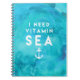 Toma notas en verano, estilo de playa con nuestro lindo cuaderno de citas. El diseño presenta "I Need Vitamin Sea" en letras naúticas blancas con un ilustracion de ancla, sobre un fondo acuático verde azulado turquesa brillante y brillante.
