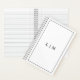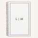 Cuaderno de negocios simple que presenta un diseño moderno y elegante con el monograma de dos letras rodeado de un borde clásico en blanco y negro. La parte posterior tiene su información de contacto. Este cuaderno personalizado en estilo minimalista es ideal para cualquier tipo de negocio.