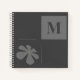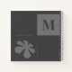 Elegante Monograma Floral Retro Daisy Estilo Gris Simple Bloc De Notas. El diseño presenta el elegante contraste de las formas geométricas y la silueta floral. Vector de silueta de margarita gris claro y cuadrado y líneas sobre fondo gris oscuro. Personalice el monograma inicial.