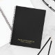 El bloc de notas profesional incluye el nombre personalizado y el texto en el estilo de fuente serif clásico de oro en el fondo negro. Atención: Los detalles del Relieve metalizado se simulan en la obra. Este producto no contará con ningún relieve ni capa que creen un efecto metalizado.