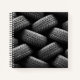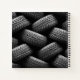 Este diseño presenta una pila de neumáticos de automóviles de goma negra.